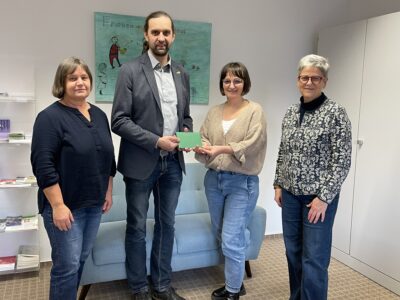 Mit einer Spende von 500 Euro unterstützt die Grünen-Kreistagsfraktion das Weidener Frauenhaus. Die Kreisrät*innen haben das Geld dieser Tage der Leiterin Enikö Nagy übergeben.
